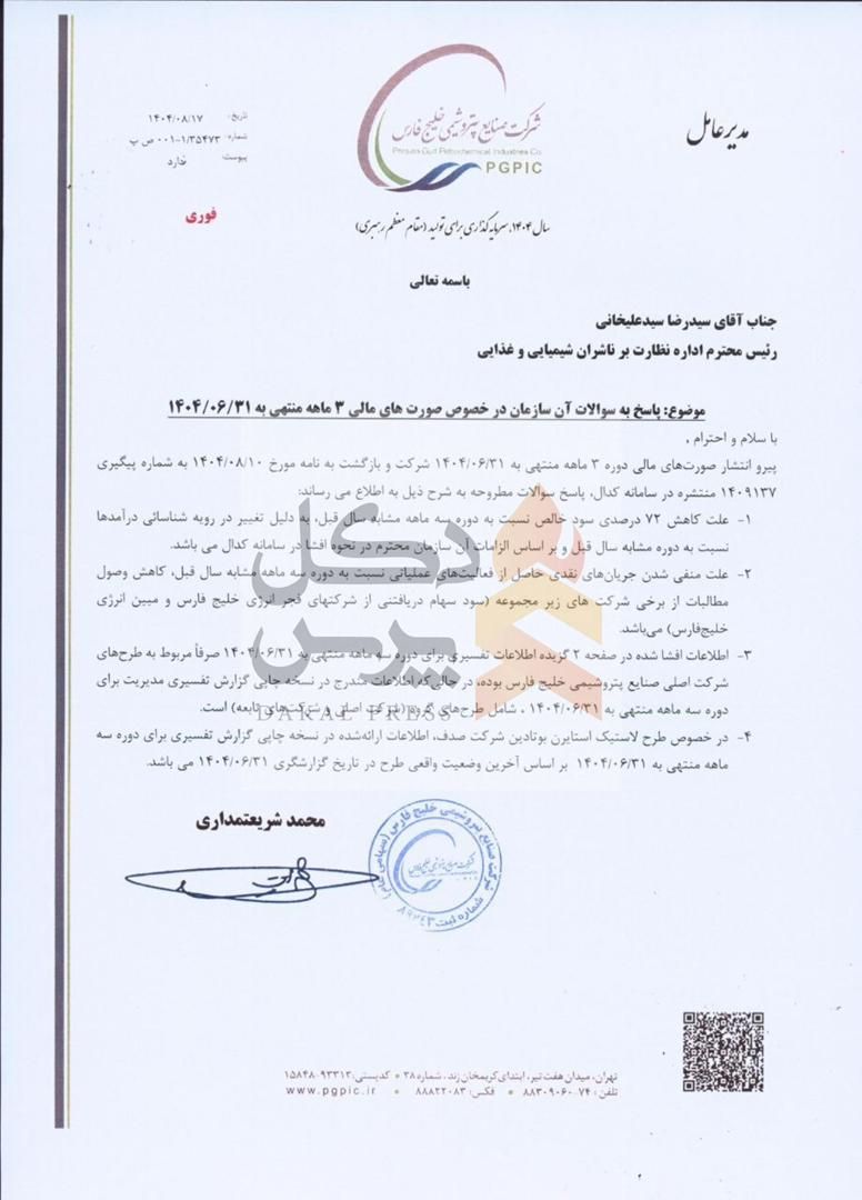 در گزارش مالی سهماهه نخست سال ۱۴۰۴، هلدینگ خلیج فارس با سقوط ۷۲ درصدی سود خالص و جریان نقدی منفی عملیاتی مواجه شده است